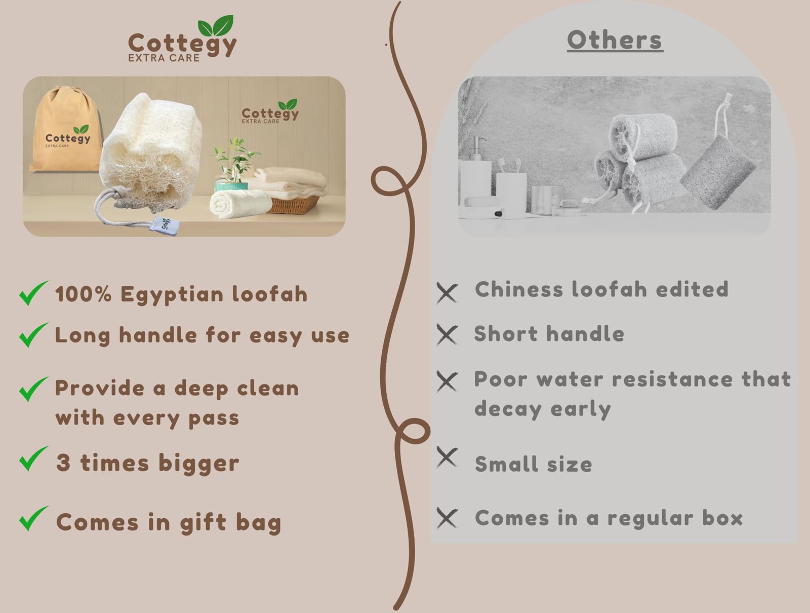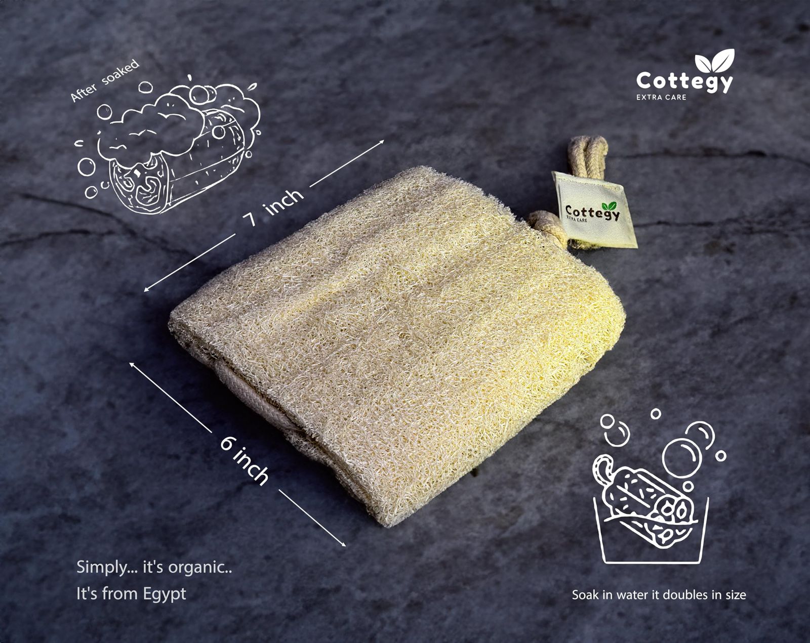 Elevate your self-care routine with the Cottegy Egyptian Natural Loofah, designed to deliver a luxurious exfoliating experience right in your own bathroom.